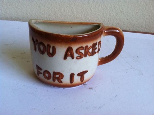 Vintage ceramic half-cup "You Asked For It". TBD