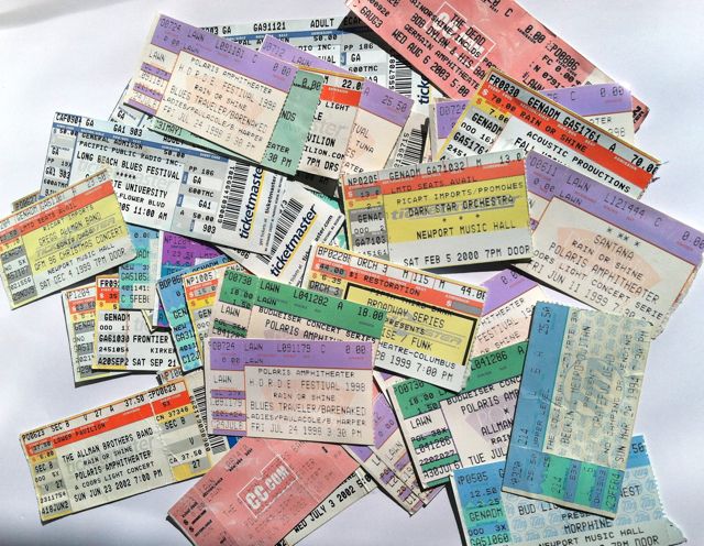 Rock and Roll Ticket Stub Collection; Grateful Dead, Allman Bros, Bob Dylan, Morphine, etc. Asking $50