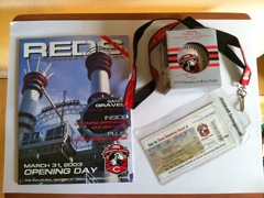 Cincinnati Reds Great American Ball Park opening Day March 31, 2003; Ball, ticket + lanyard, and program. TBD